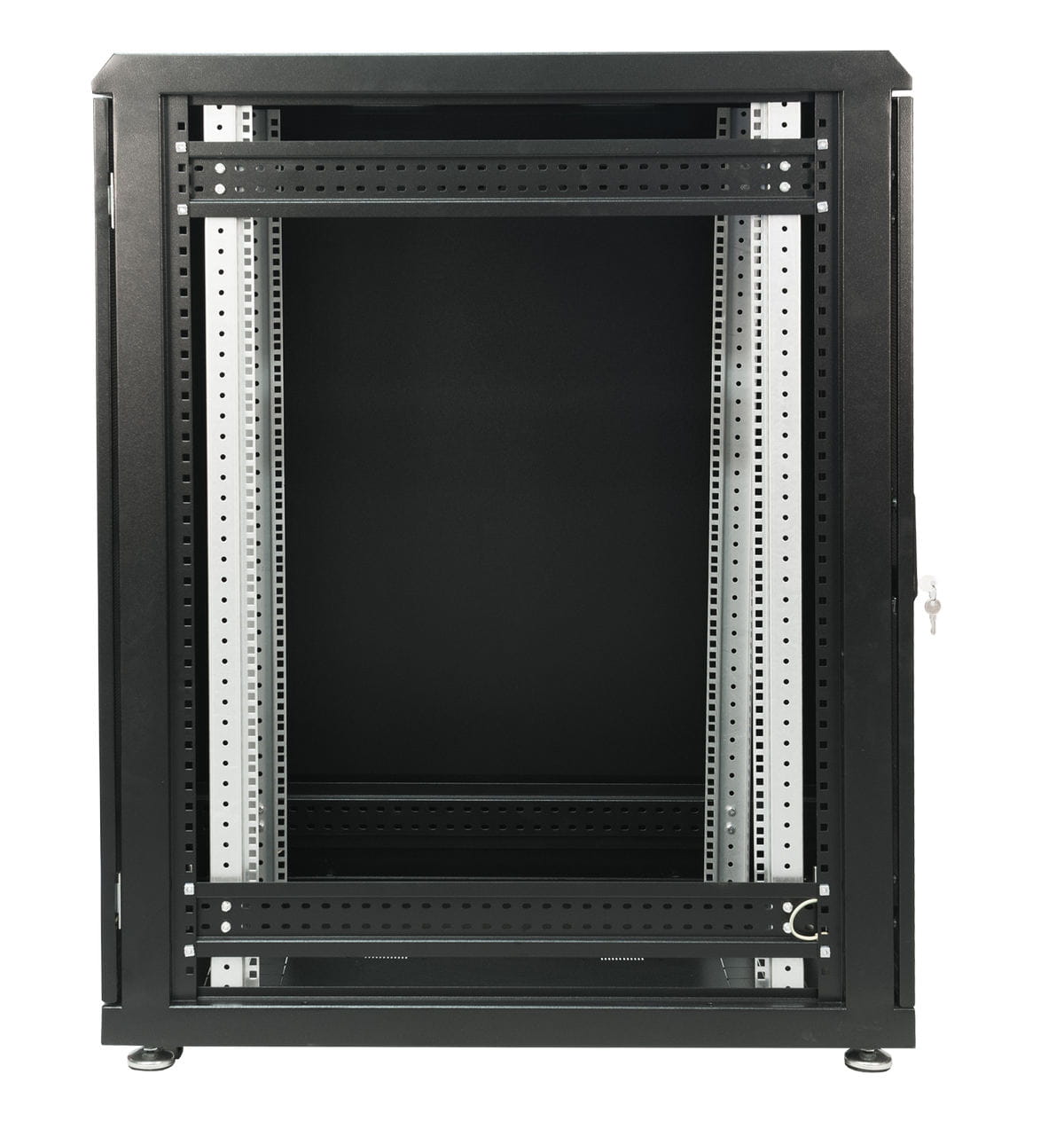 *Zdjęcie poglądowe. Podana cena dotyczy zakupu szafy serwerowej na nóżkach poziomujących. Dodatkowe akcesoria (kółka)dostępne w produktach powiązanych.